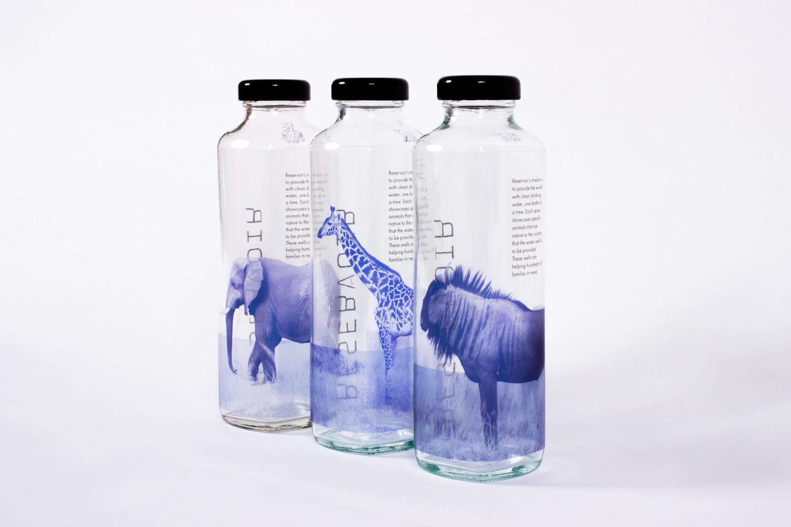Each package of water bottles is represented by a certain type of animal indigenous to the areas that Reservoir is providing funds.